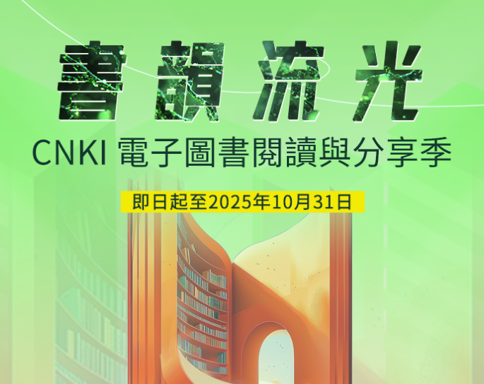 🔹  分享好書: 在社群媒體發布讀書推薦(標註話題#書韻流光——CNKI電子圖書閱讀與分享季並@CNKI官方帳號,Facebook@CNKI Overseas/X@CNKI_Int/Linkedin@CNKI International),或製作短影音分享閱讀體驗即可獲得CNKI AI會員、驚喜好禮及額外抽獎機會。