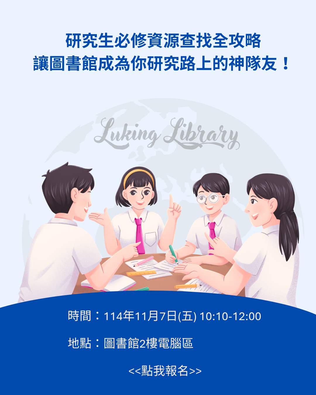 不要迷惘~快來參加圖書館資源查找全攻略,讓你迅速掌握豐富的學術資源,讓圖書館成為你研究路上的神隊友。