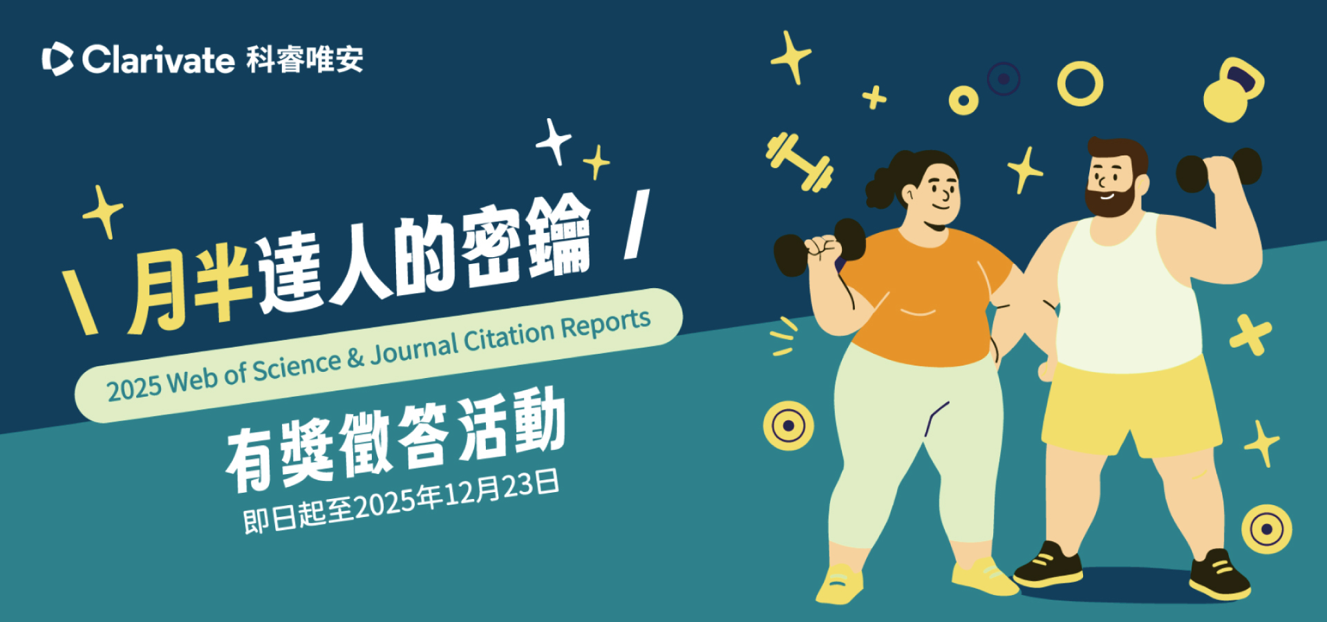 根據世界衛生組織統計,2022年全球成人過重及肥胖人數由1990年的25%上升至43%,而國健署最新「國民營養健康調查」統計,台灣成人超重與肥胖率達50.3%,且台灣國人十大死因中,有高達8項與肥胖相關。肥胖症的成因非常多,歡迎您參加2025 Web of Science與Journal Citation Reports有獎徵答活動,讓我們追尋題目的線索,一起來了解肥胖症的相關研究,解鎖肥胖密鑰並拿大獎喔!!